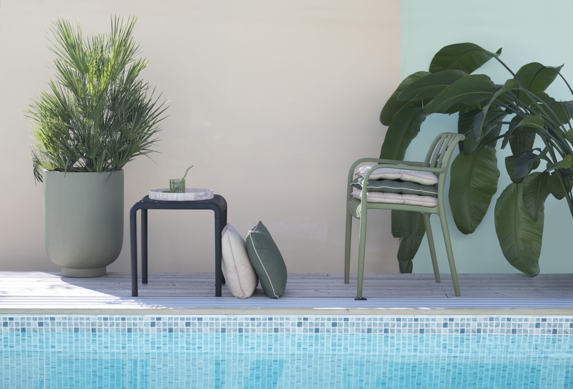 Snygg karmstol för utomhusbruk som är tillverkad i 50% återvunnen plast från Wikholm Form. Stolen är stapelbar och denna varianten kommer med snygga och praktiska armstöd. Ravello finns även i en variant utan armstöden samt i flera färger som denna gröna, men också i beige och svart. Fina att mixa & matcha!